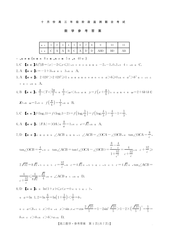 湖南省十月份高三年级阶段监测联合考试 数学答案.pdf