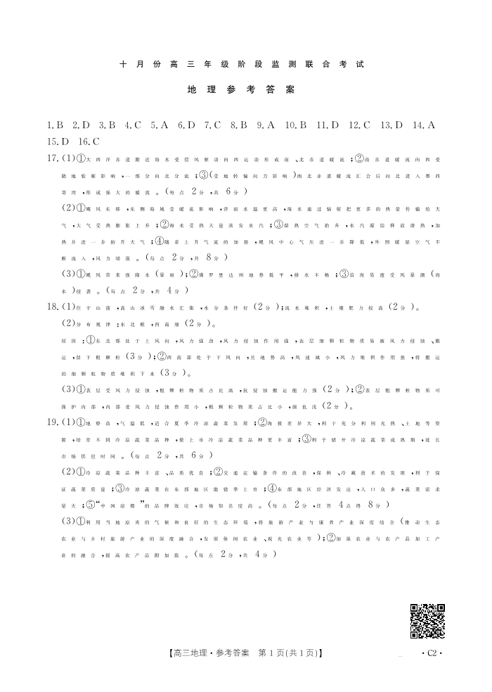 湖南省十月份高三年级阶段监测联合考试 地理C2答案.pdf