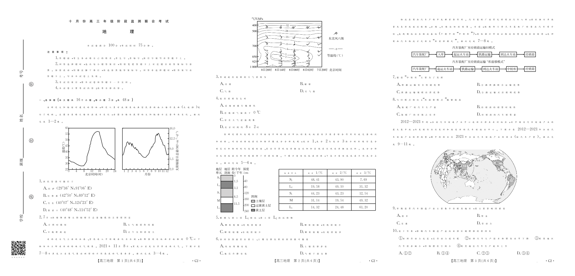 湖南省十月份高三年级阶段监测联合考试 地理C2.pdf