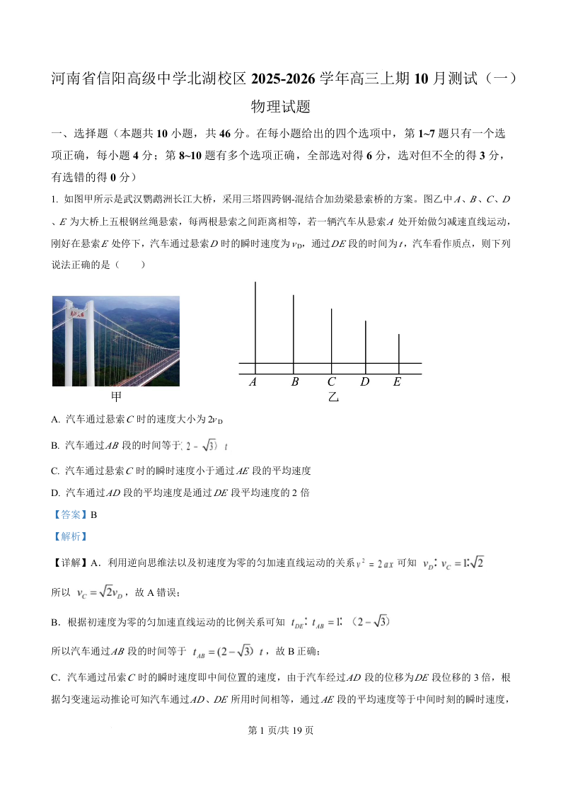 河南省信阳高级中学2026届高三上学期10月测试(一)物理答案.docx