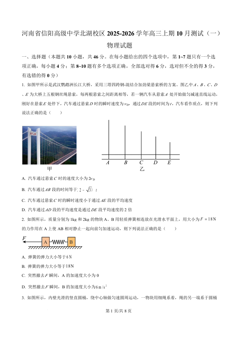 河南省信阳高级中学2026届高三上学期10月测试(一)物理.docx