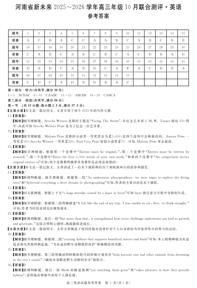 河南省新未来2025-2026学年高三年级10月联合测评-英语答案.pdf