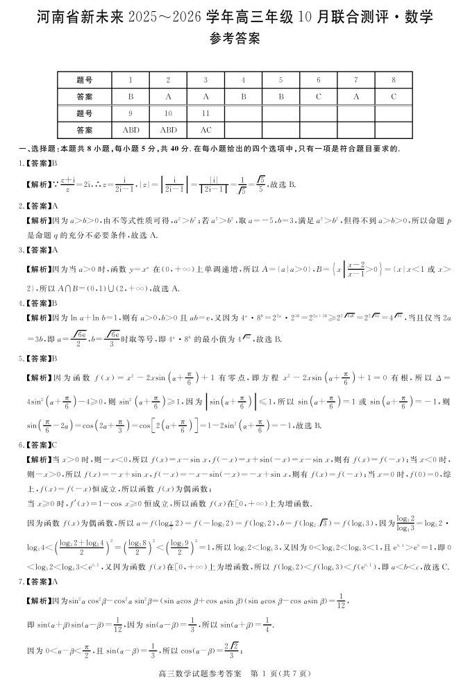河南省新未来2025-2026学年高三年级10月联合测评-数学答案.pdf