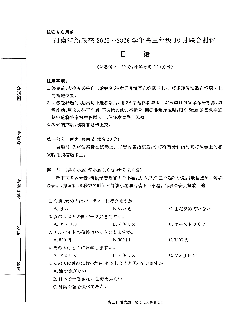 河南省新未来2025-2026学年高三年级10月联合测评-日语.pdf