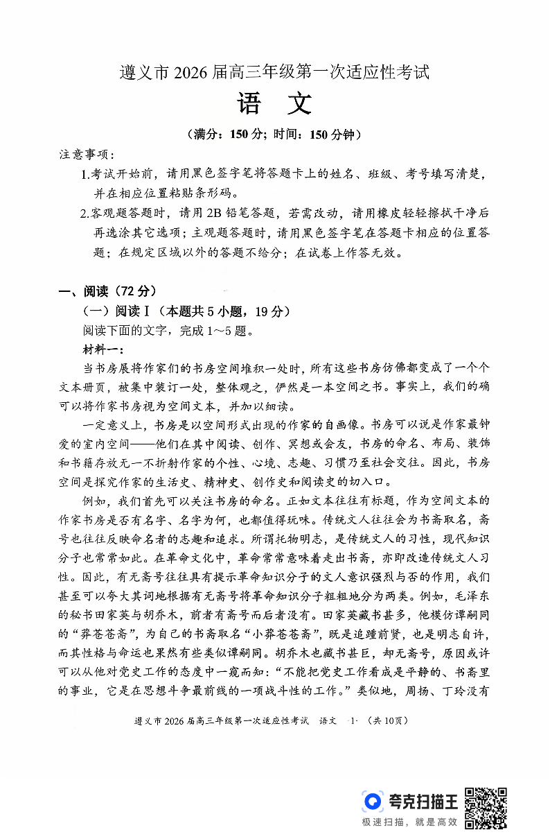 遵义市2026届高三年级第一次适应性考试 语文.pdf