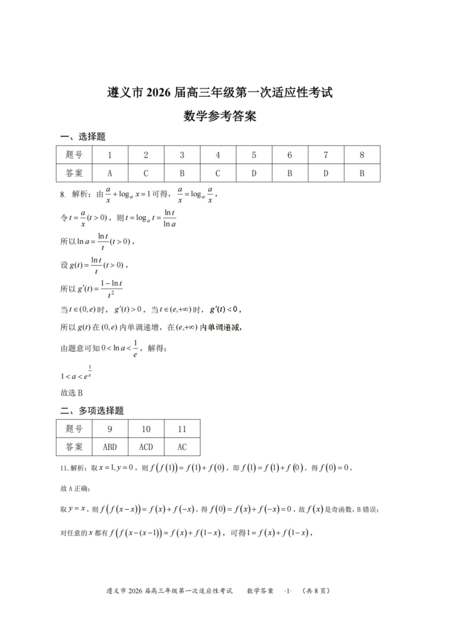 遵义市2026届高三年级第一次适应性考试 数学答案.pdf