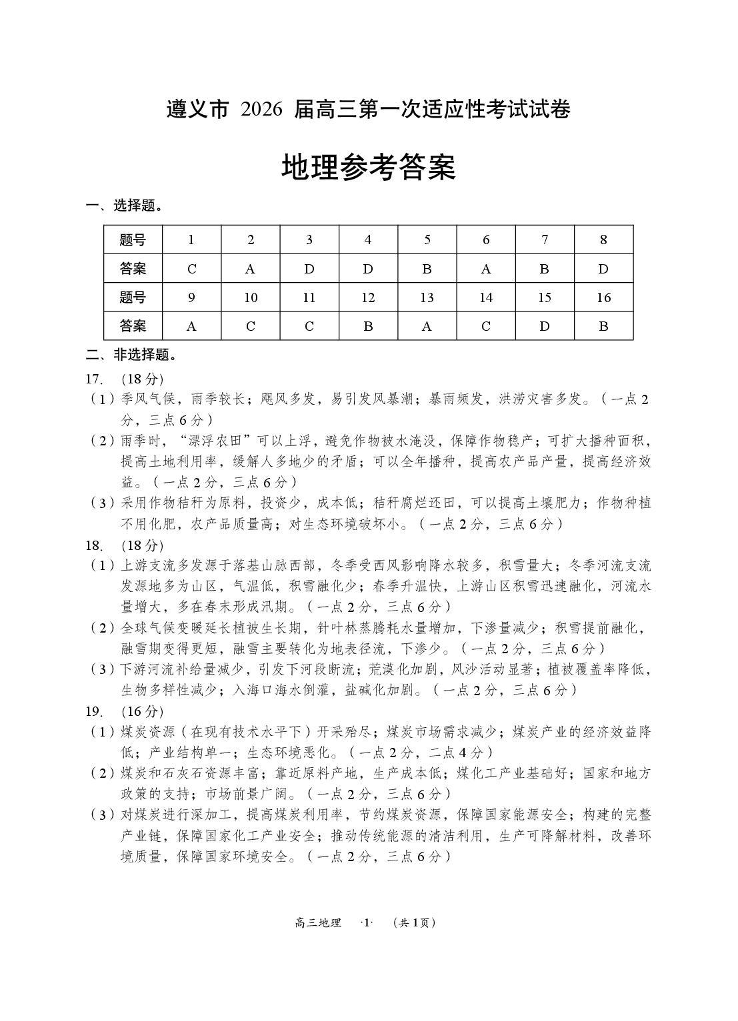 遵义市2026届高三年级第一次适应性考试 地理答案.pdf