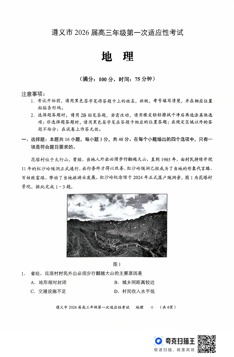 遵义市2026届高三年级第一次适应性考试 地理.pdf