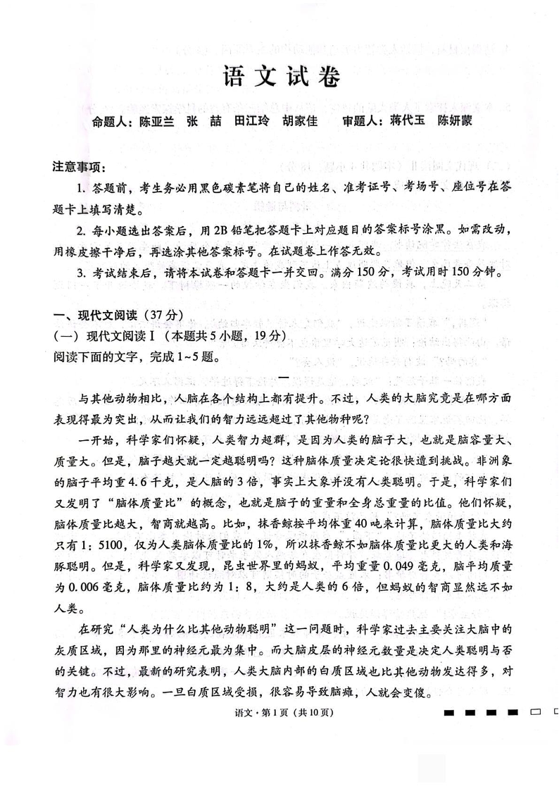 贵阳第一中学2026届高考适应性月考卷(二)语文.pdf