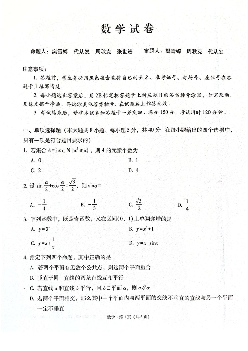 贵阳第一中学2026届高考适应性月考卷(二)数学.pdf