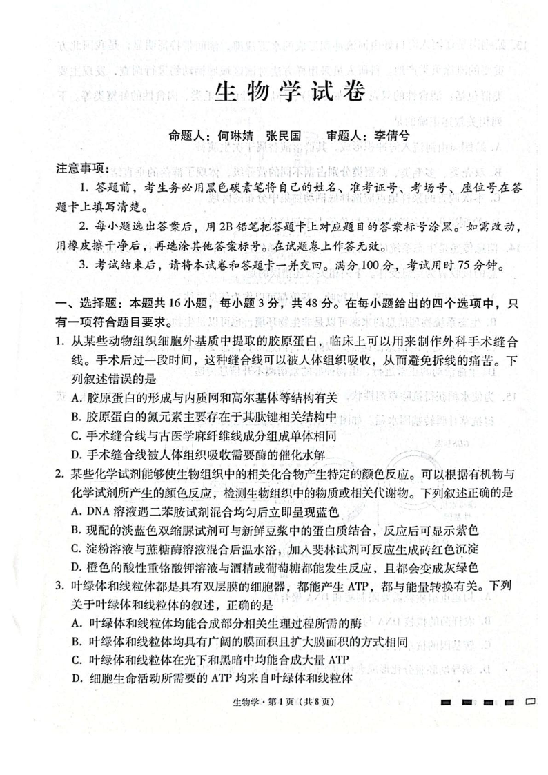 贵阳第一中学2026届高考适应性月考卷(二)生物.pdf
