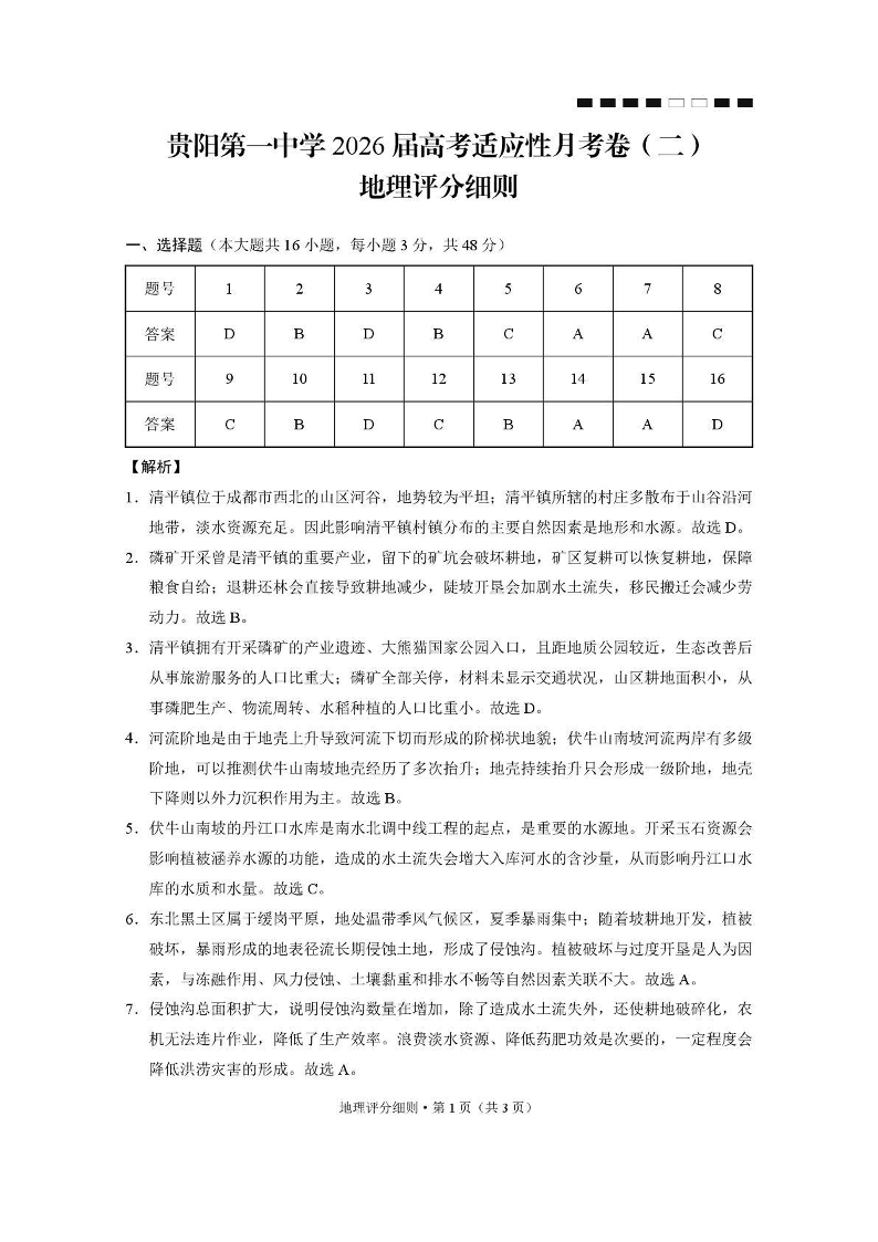 贵阳第一中学2026届高考适应性月考卷(二)地理答案.pdf