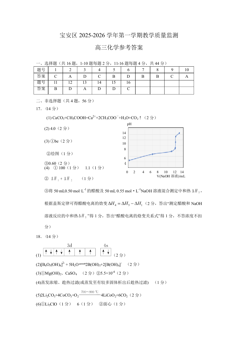 广东省深圳市宝安区2025-2026学年高三上学期教学质量检测 化学答案.pdf