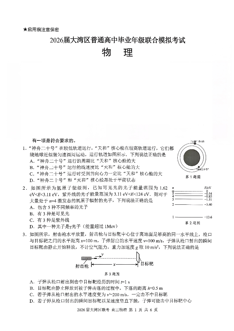 广东省大湾区2026届普通高中毕业年级联合模拟考试 物理.pdf