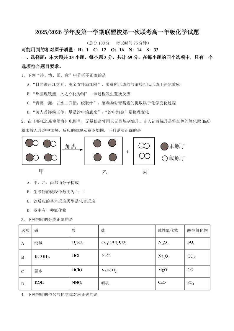 江苏省盐城市五校联考2025-2026学年高一上学期10月第一次联考 化学试题(含答案).docx