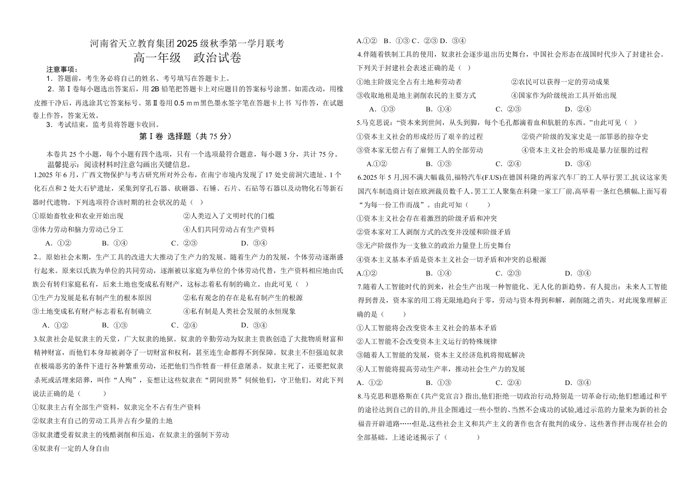 河南省天立教育集团2025-2026学年高一上学期10月联考 政治.docx