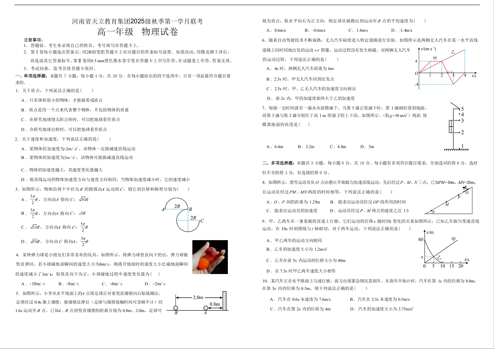 河南省天立教育集团2025-2026学年高一上学期10月联考 物理.docx