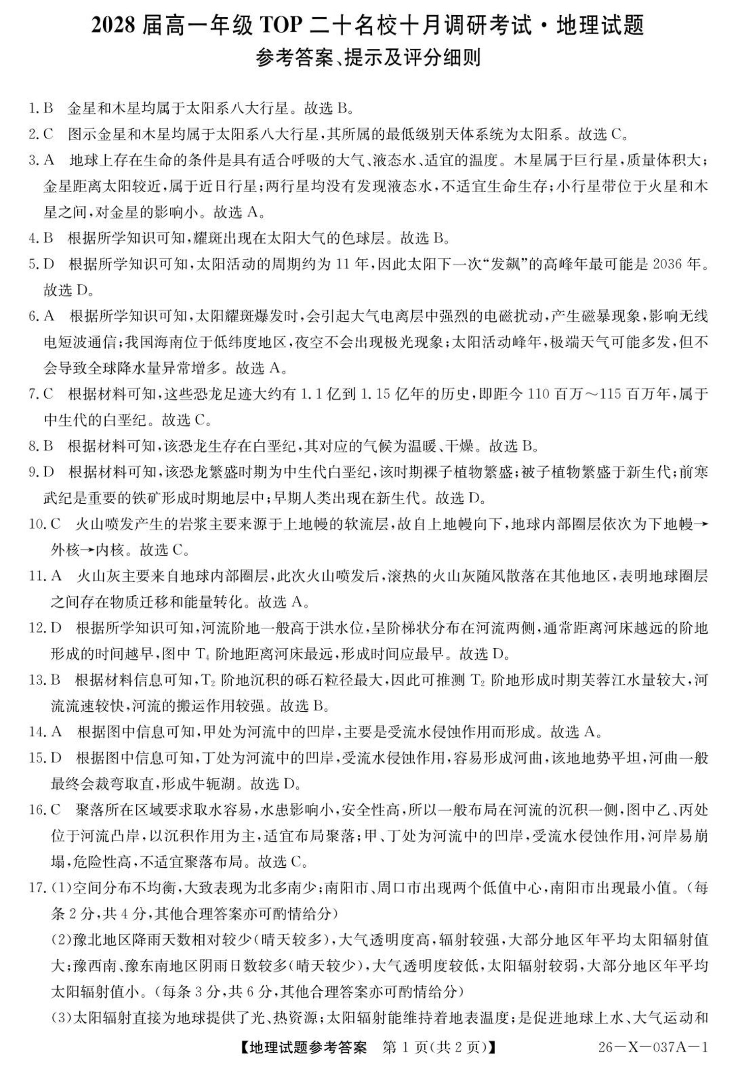 河南省TOP二十名校2025-2026学年高一上学期10月调研考试 地理答案.pdf