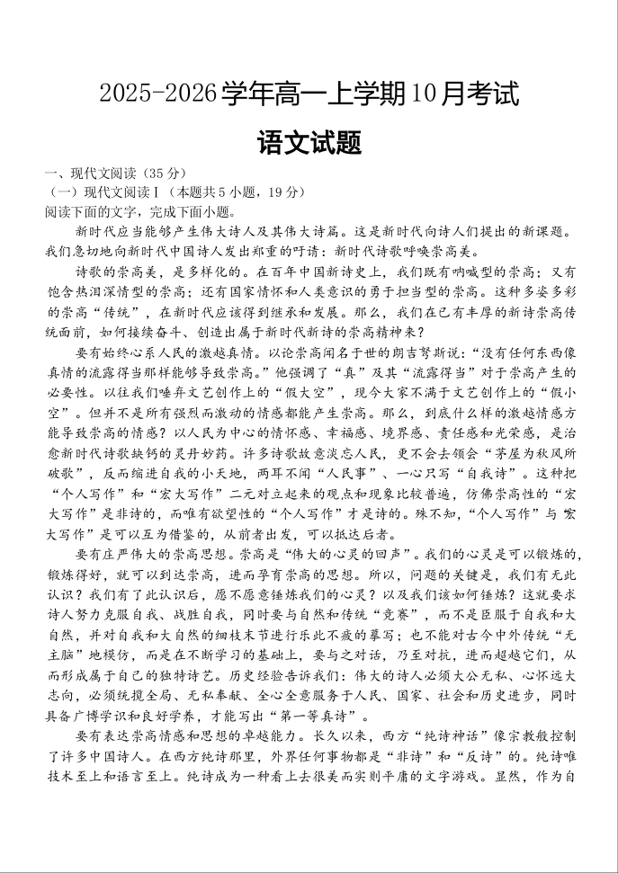 河北省保定市唐县第一中学2025-2026学年高一上学期10月月考 语文试题(含答案).docx