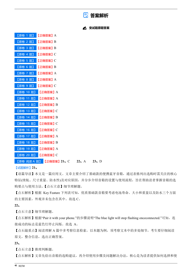点石联考2025年10月高二英语巩固卷-答案.pdf