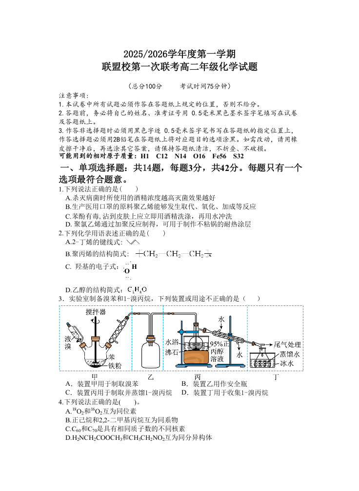 江苏省盐城市五校联考2025-2026学年高二上学期10月第一次联考 化学试题(含答案).docx