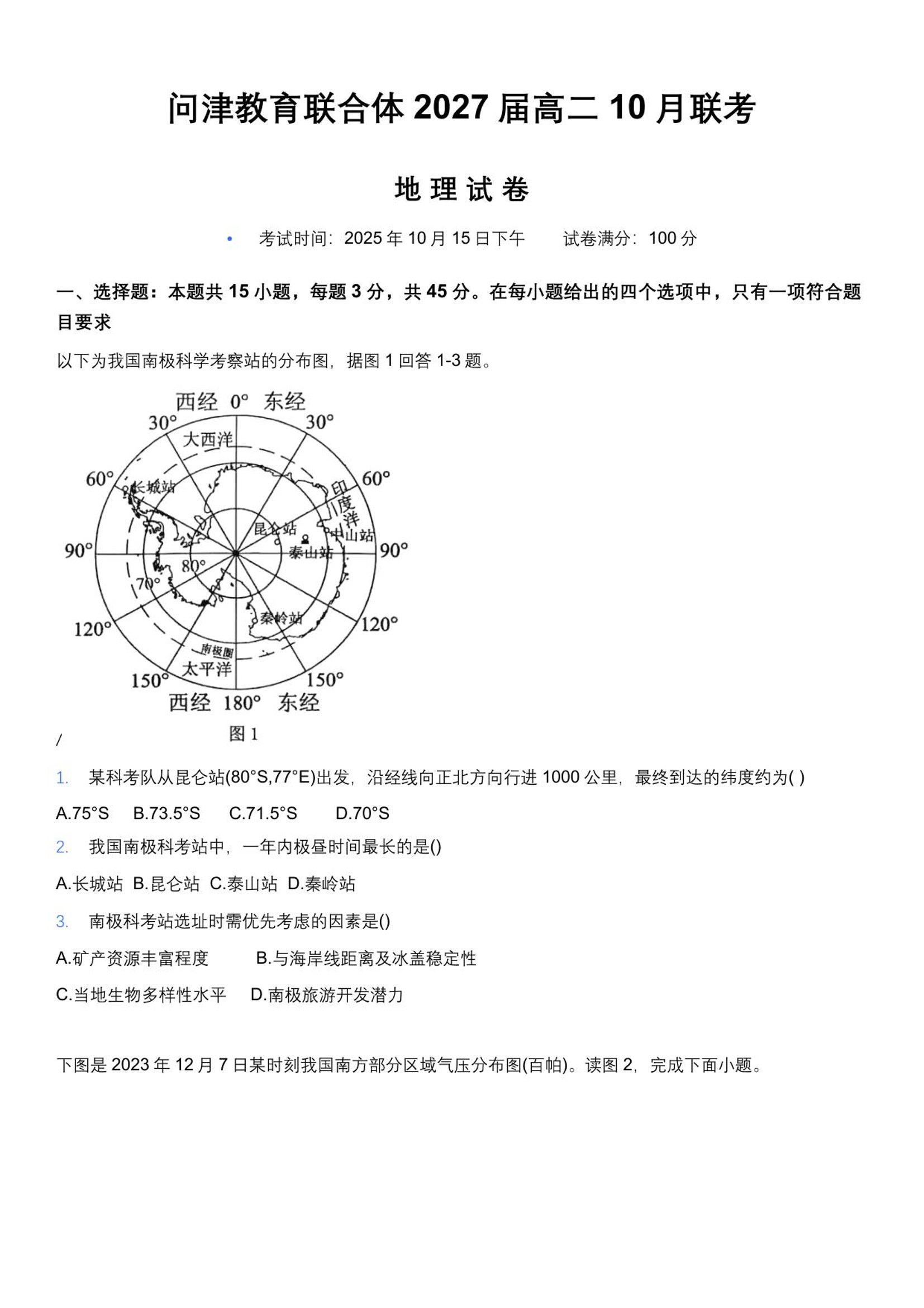 湖北省武汉市问津联盟2025-2026学年高二上学期10月联考 地理试题(含答案).pdf