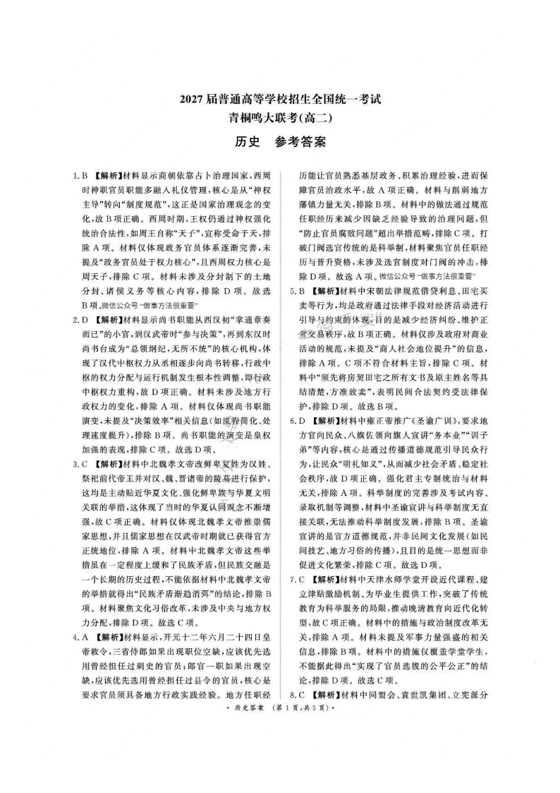 历史答案-河南高二青桐鸣大联考2025年10月联考.pdf