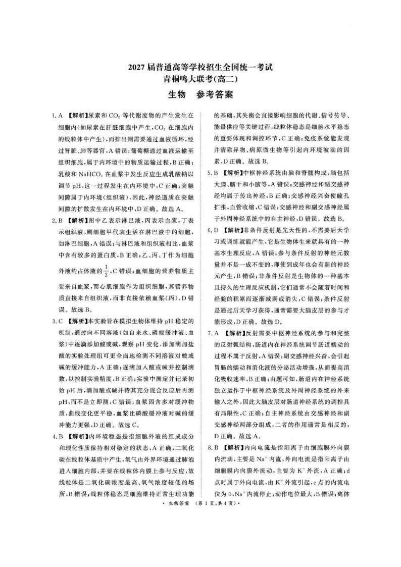 生物答案-河南高二青桐鸣大联考2025年10月联考.pdf