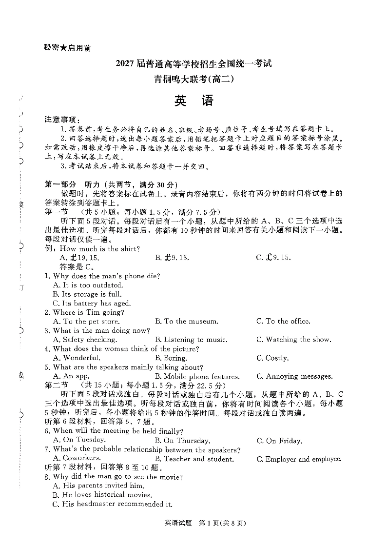 英语试卷-河南高二青桐鸣大联考2025年10月联考.pdf