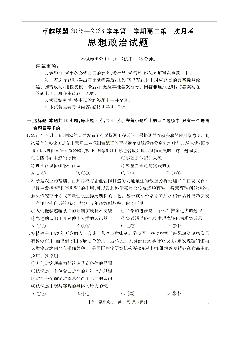 河北省邢台市卓越联盟2025-2026学年高二上学期10月月考 政治.docx