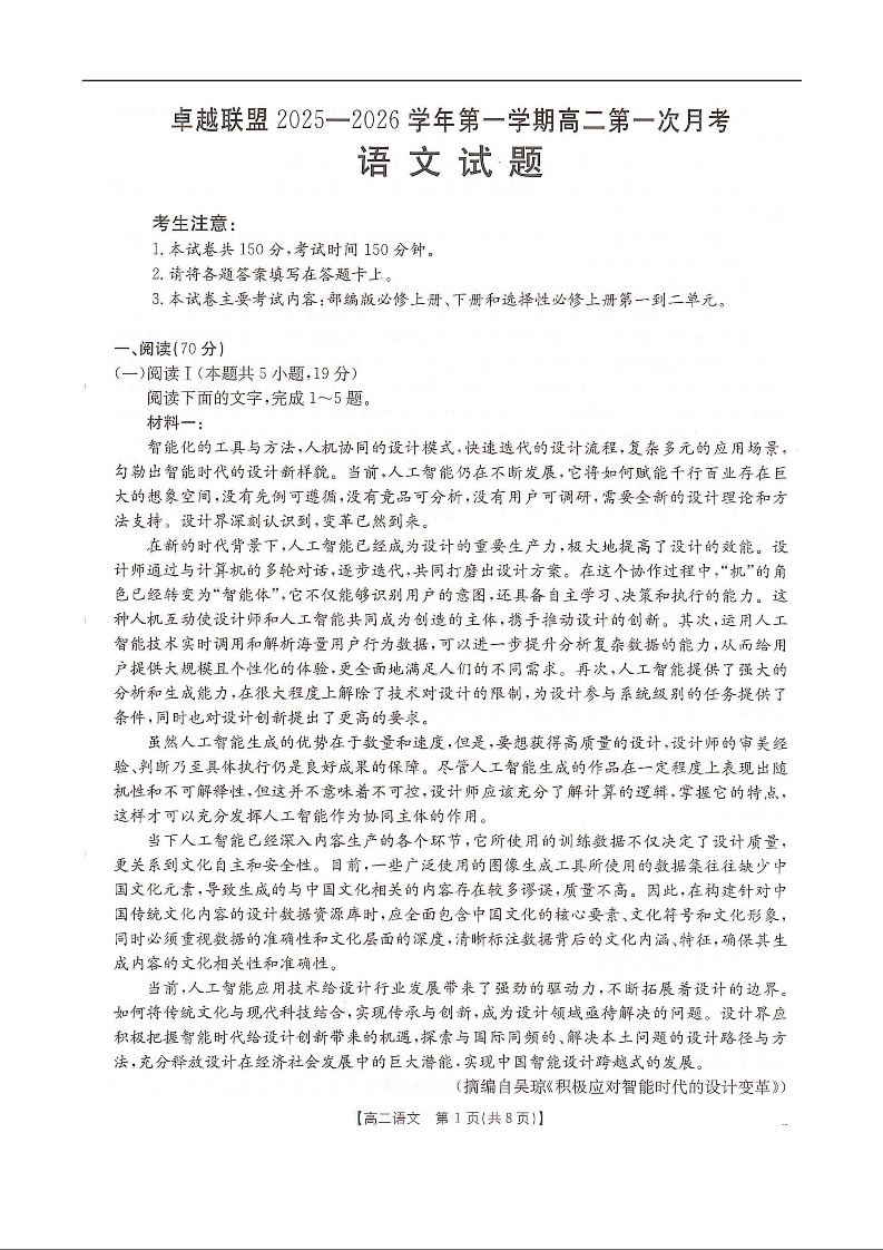 河北省邢台市卓越联盟2025-2026学年高二上学期10月月考 语文.docx
