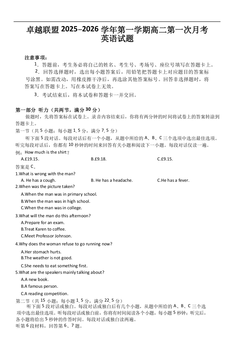 河北省邢台市卓越联盟2025-2026学年高二上学期10月月考 英语.docx