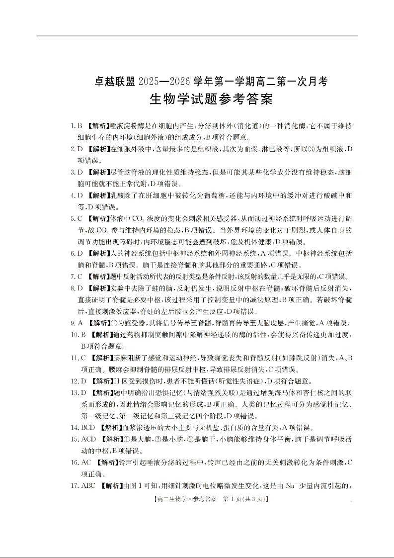 河北省邢台市卓越联盟2025-2026学年高二上学期10月月考 生物答案.docx