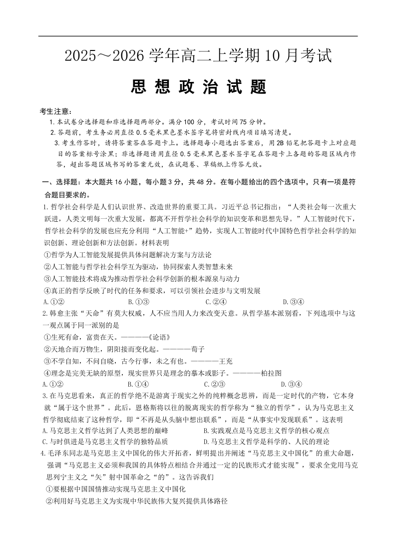 河北省保定市八校联考2025-2026学年高二上学期10月考试 政治.docx