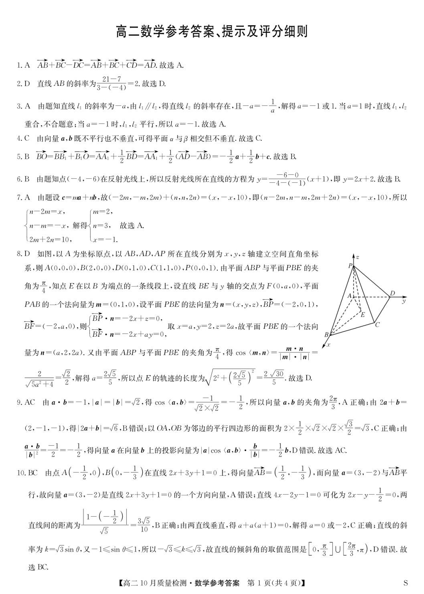 河北省保定市八校联考2025-2026学年高二上学期10月考试 数学答案.pdf