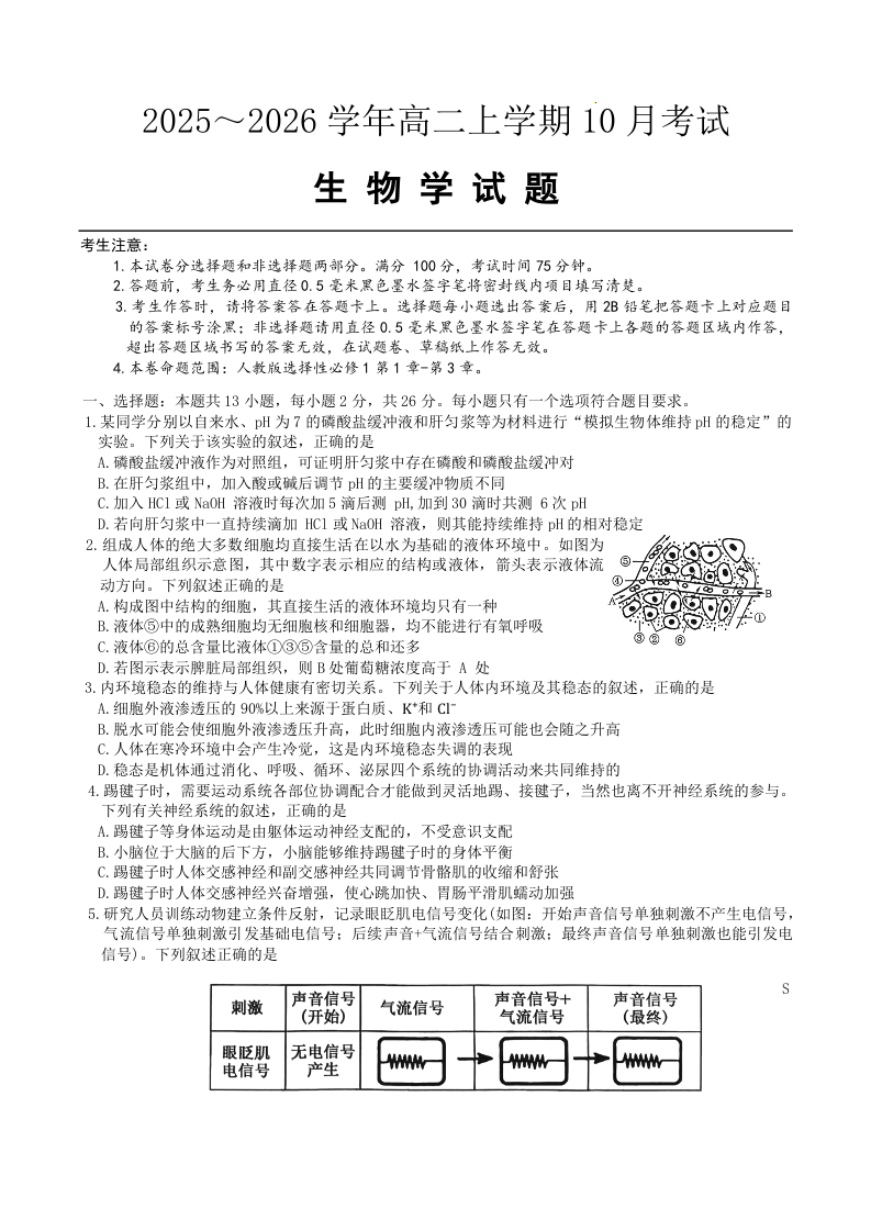 河北省保定市八校联考2025-2026学年高二上学期10月考试 生物.docx