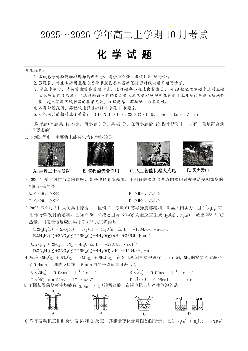 河北省保定市八校联考2025-2026学年高二上学期10月考试 化学.docx