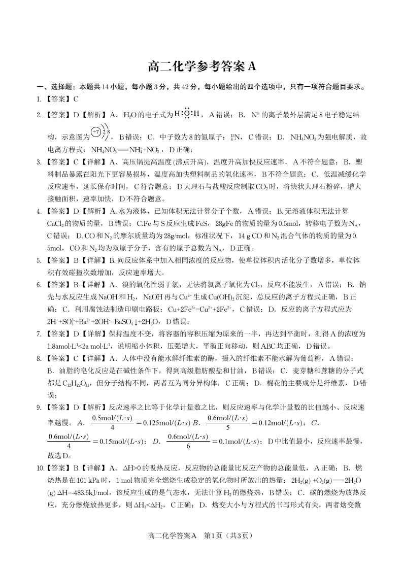 化学答案A·2025年高二10月联考.pdf