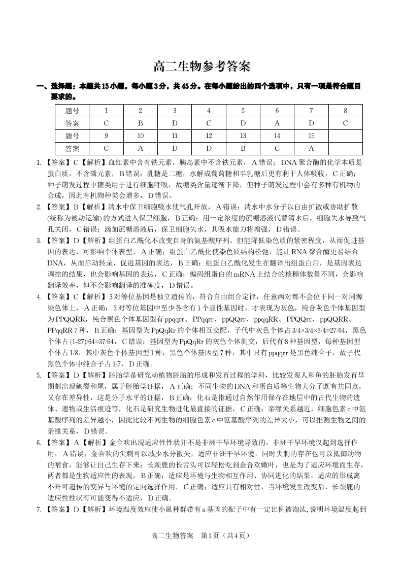 生物答案·2025年高二10月联考.pdf