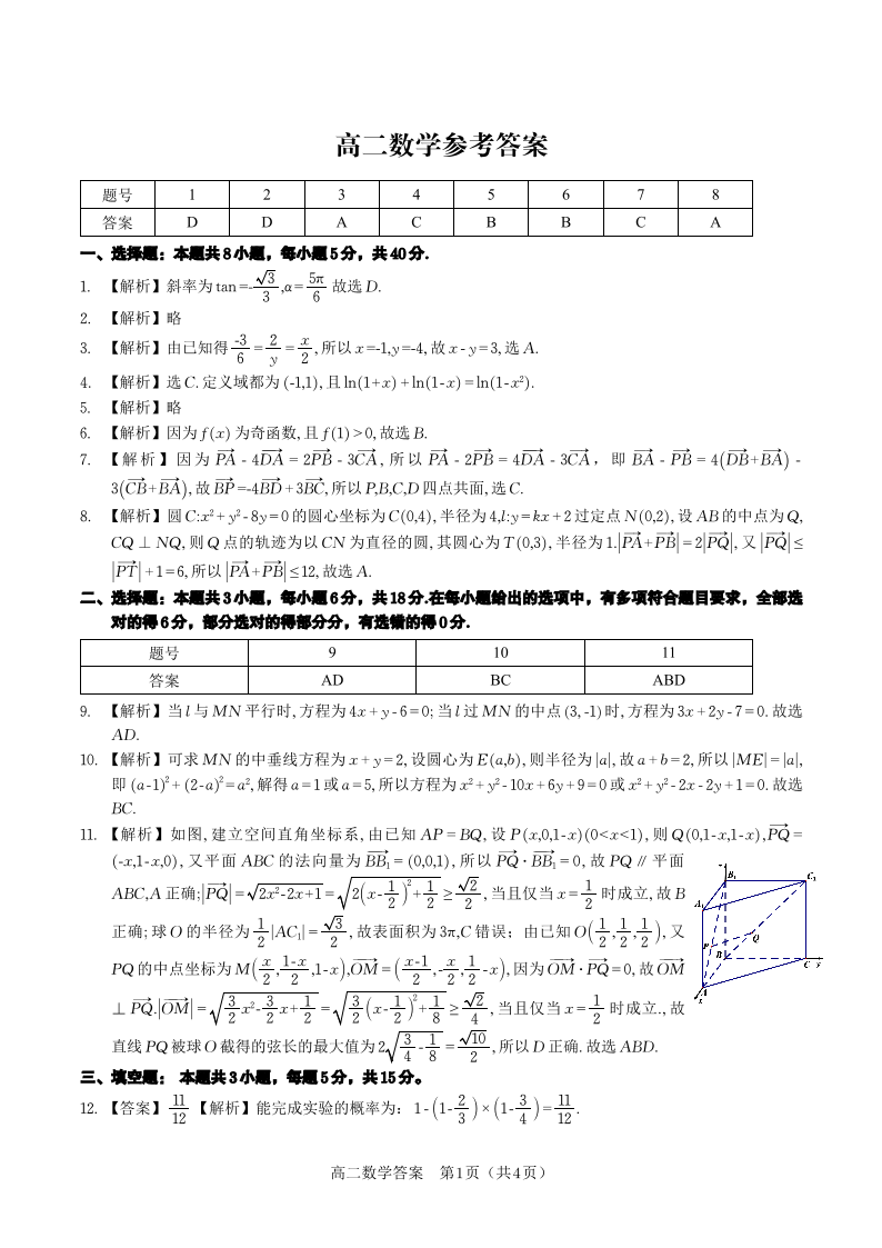数学答案·2025年高二10月联考.pdf