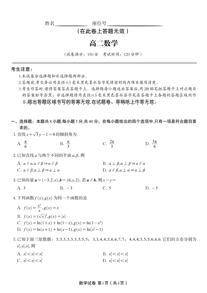数学试题·2025年高二10月联考.pdf