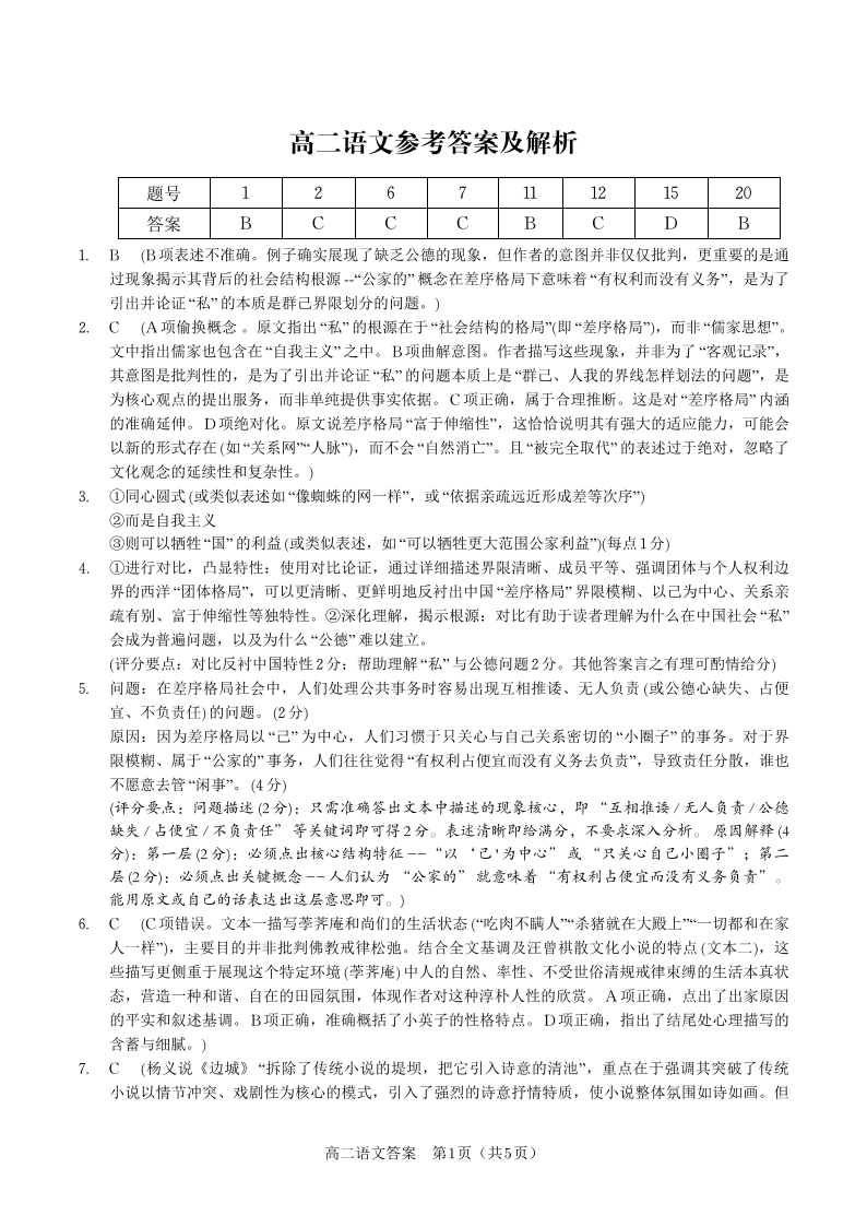 语文答案·2025年高二10月联考.pdf