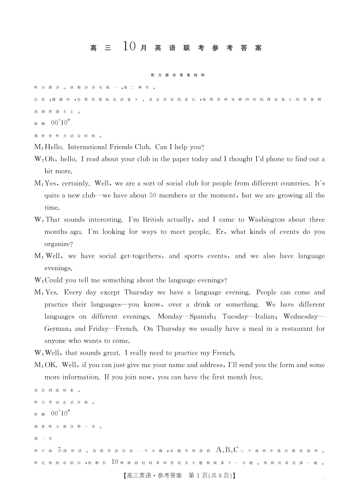 福建省2026届高三上学期10月联考 英语答案.pdf