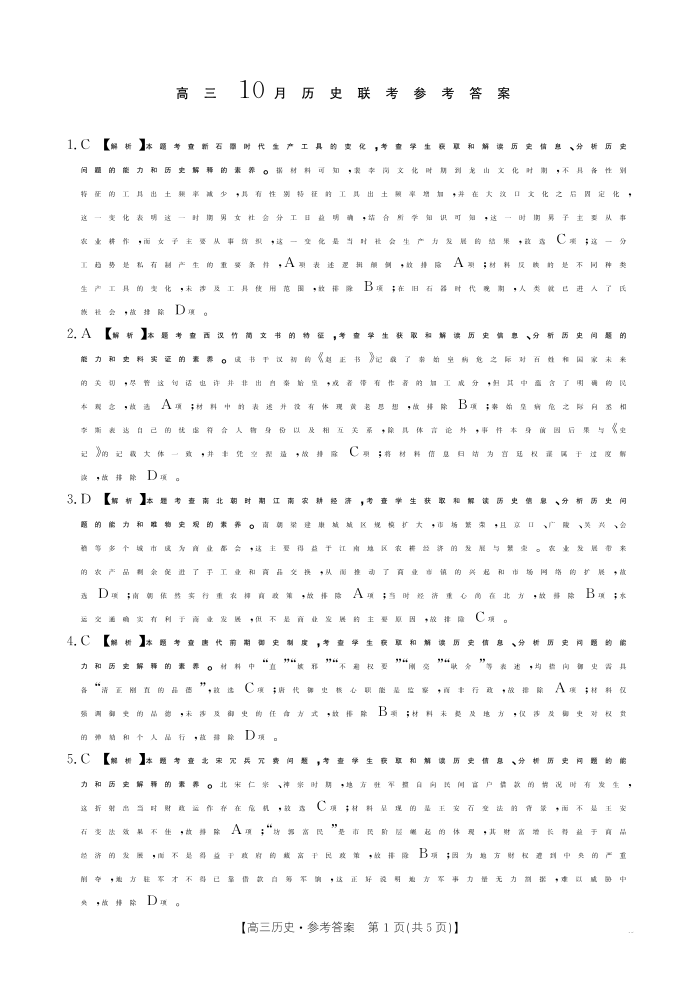 福建省2026届高三上学期10月联考 历史答案.pdf