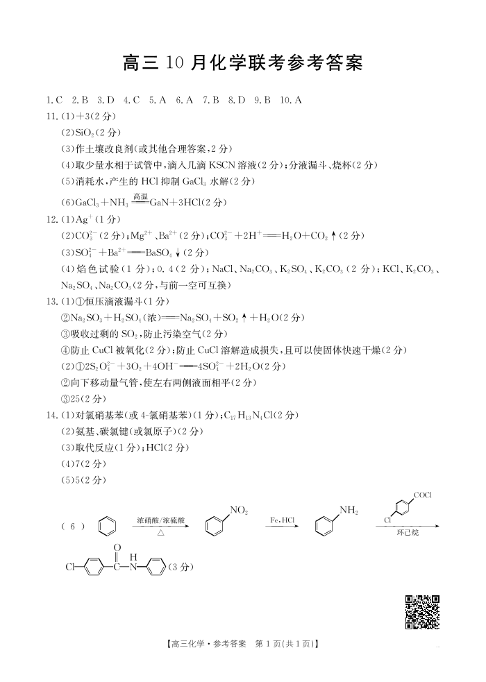 福建省2026届高三上学期10月联考 化学答案.pdf
