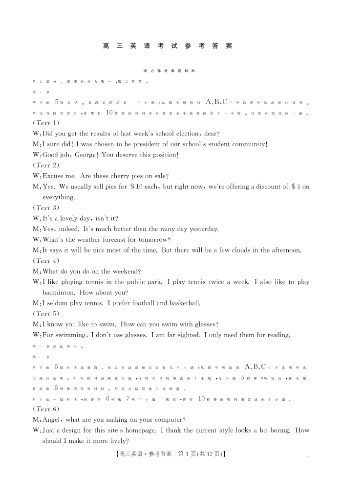 广西2026届高三上学期10月联考 英语答案.pdf
