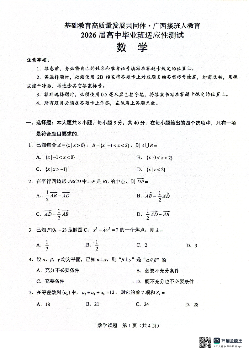 广西接班人教育2026届高中毕业班适应性测试 数学.pdf