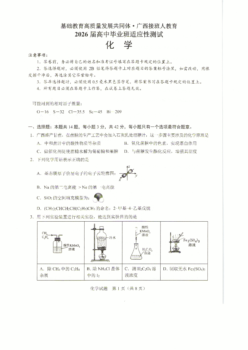 广西接班人教育2026届高中毕业班适应性测试 化学.pdf