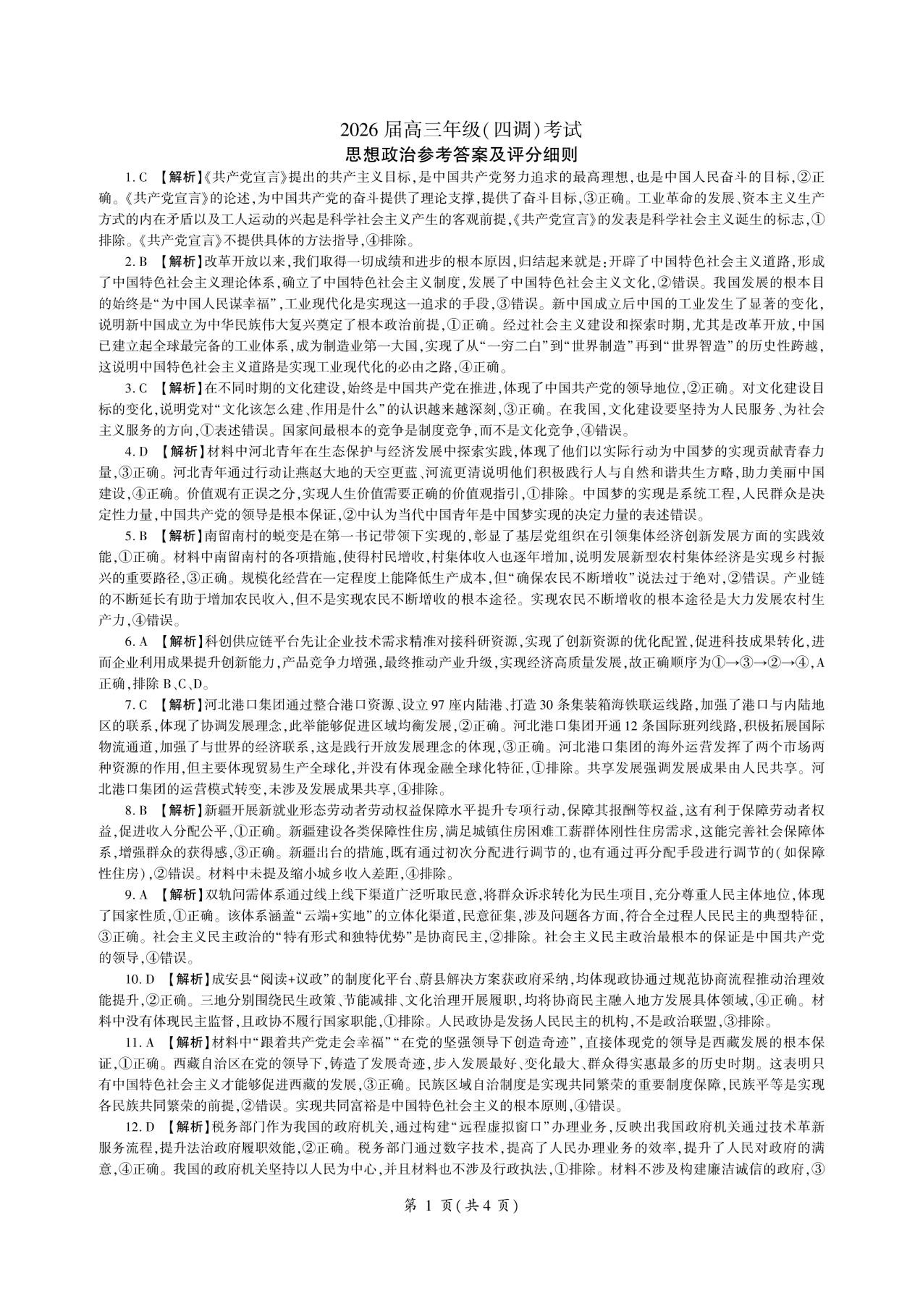 河北省衡水市2026届高三年级(四调)考试 政治答案.pdf