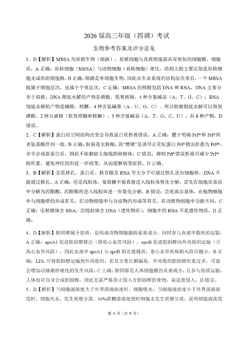 河北省衡水市2026届高三年级(四调)考试 生物答案.pdf